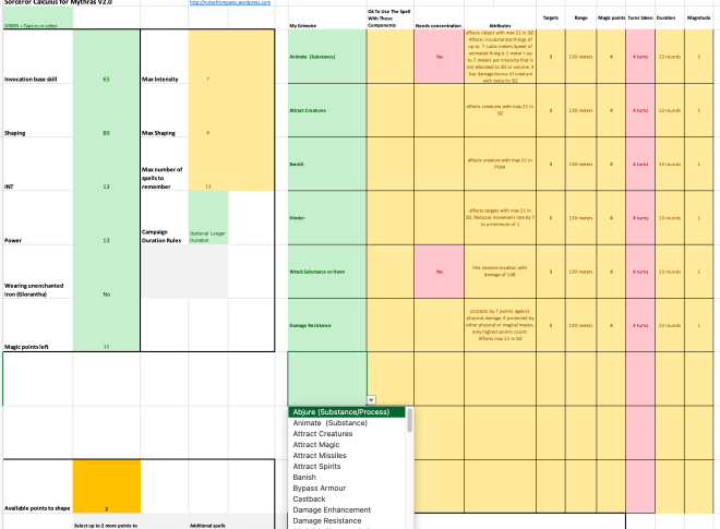 Mythras Charts and Tables