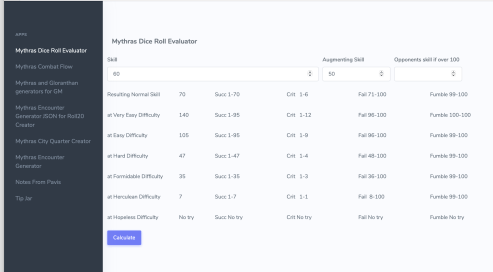 Mythras Charts and Tables