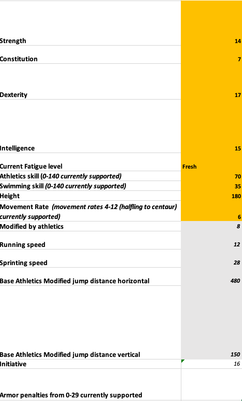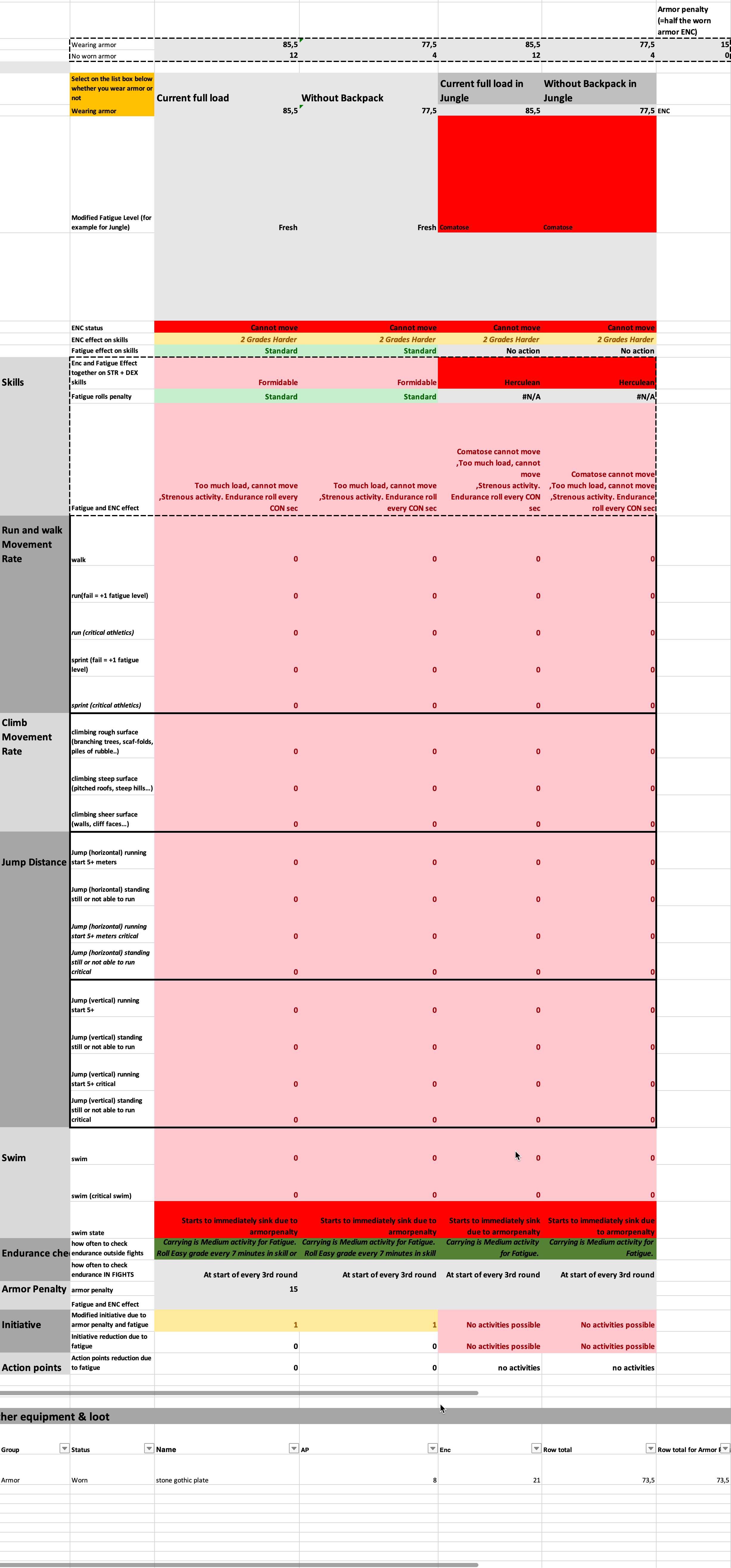 Someone in the Discord wanted to have a stone articulated plate for a player in his campaign. Tried the Fatigue and Encumbrance Calculator on that and noticed a few flaws in the calculations that become evident at the outer edge of the world. Fixed those with 3.2 version of the calculator