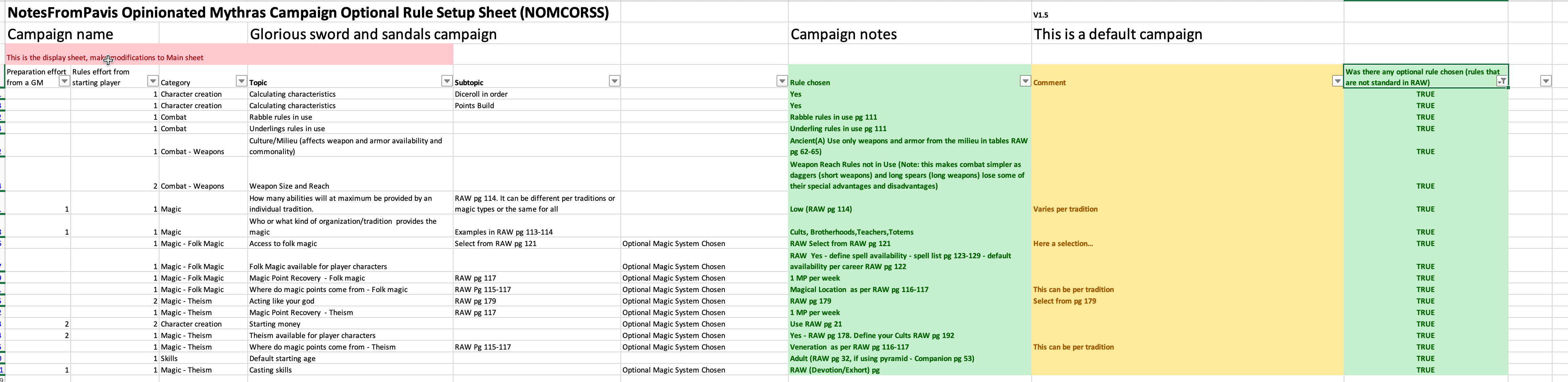 Mythras system is truly a toolkit. NOMCORSS (NotesFromPavis Opinionated Mythras Campaign Optional Rule Setup Sheet) tries to gather together all the Mythras rules options from all of the Mythras supplements with sensible (perhaps opinionated) default options. Version 1.5 contains in the order of 40 new rulings. – the new supplements added are Mythic Babylon and Classic Fantasy.