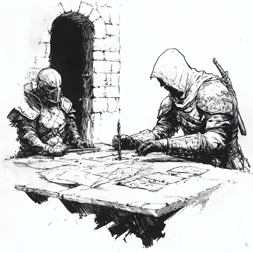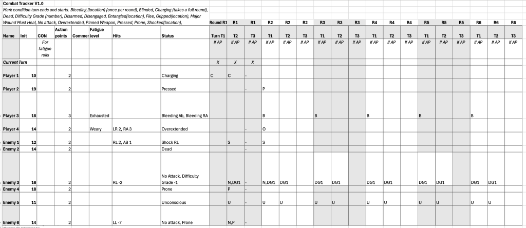 Either print out the template in multiple copies for you to scribble the turn results. For the current fight use one of the copies.