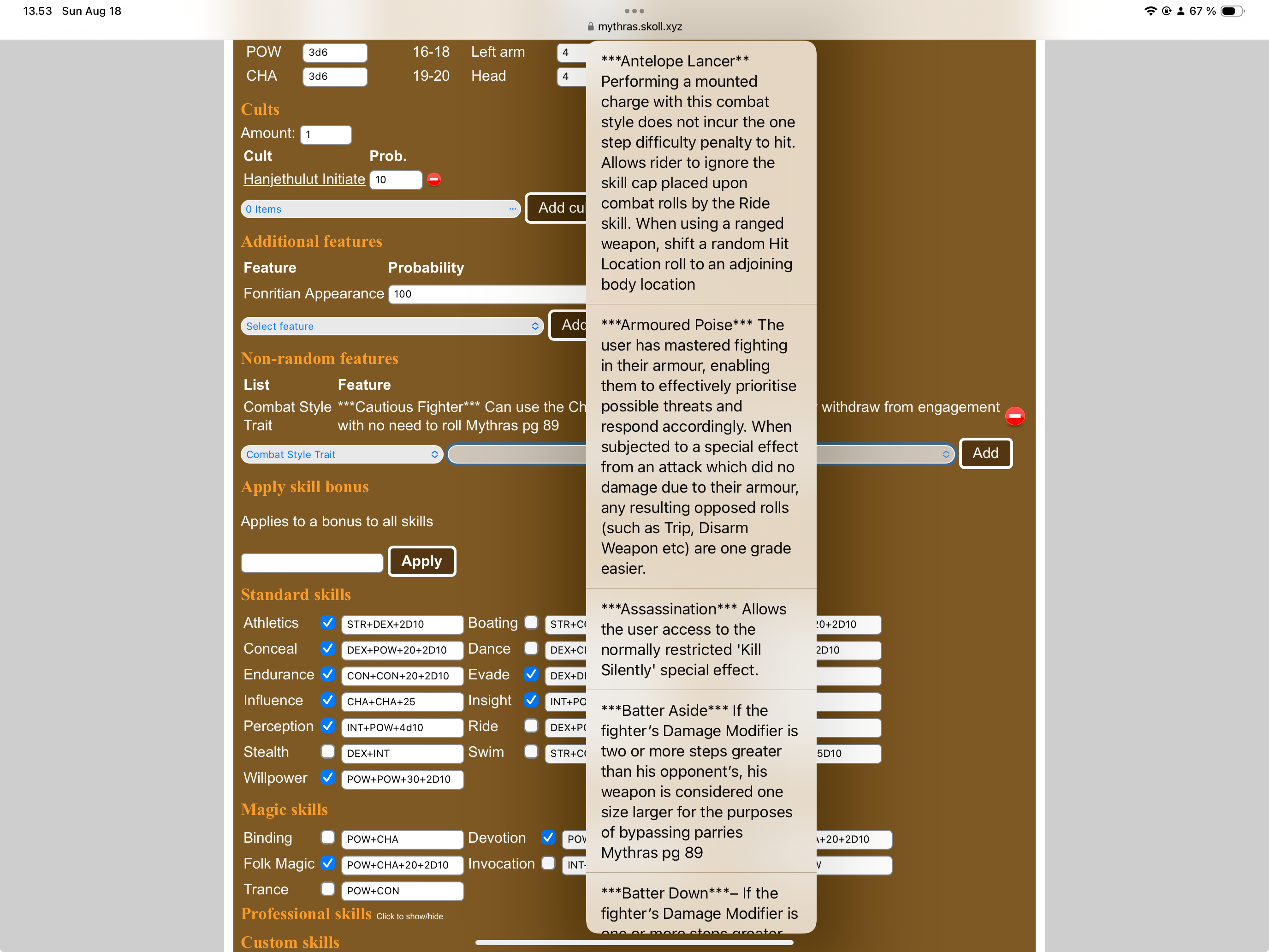 There are also 26 new Combat Styles from various campaigns and Armies and Enemies of Dragon Pass included In addition there are 11 new Combat Style Traits – mostly from Book of Schemes.