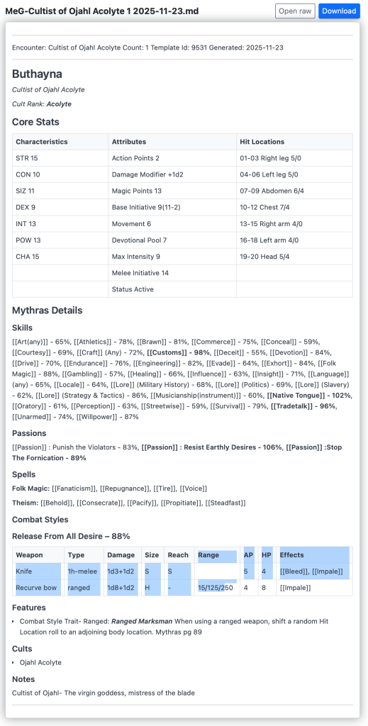 - Matt_E (Mythras Discord): “Hannu, this is kind of amazing. Thank you!”