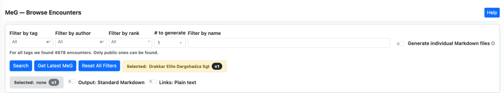 - In the MeG Encounter Library, generate any encounter as usual.