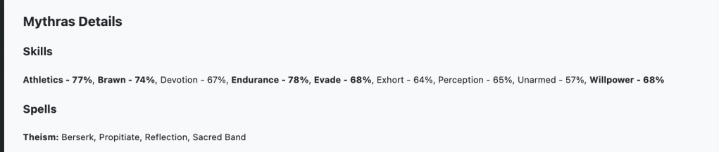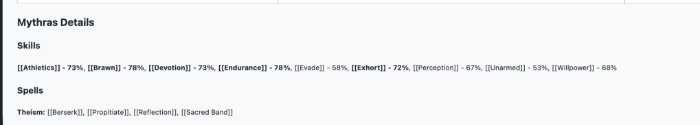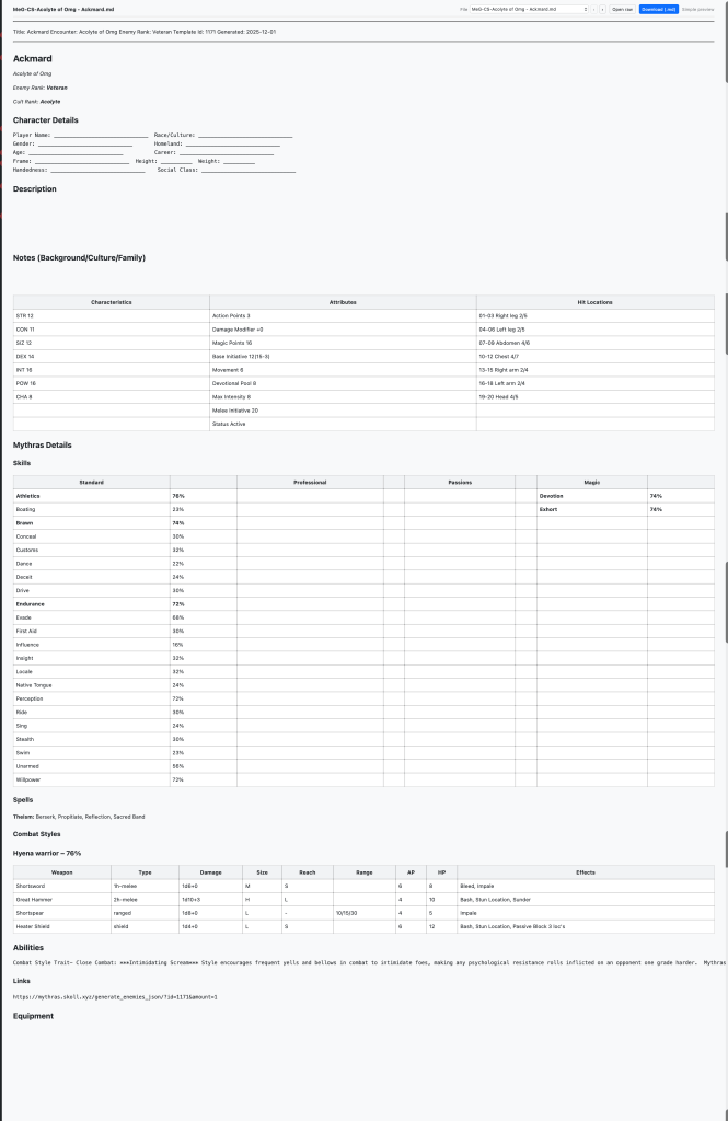 - New Character Sheet output mode for Mythras statblocks generated from MeG data.