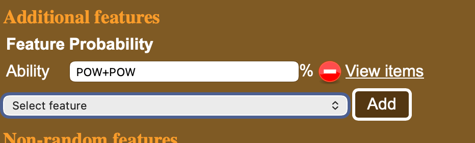 Here we could add random ability that is POW+POW likely to appear for the creature from the ability feature list.