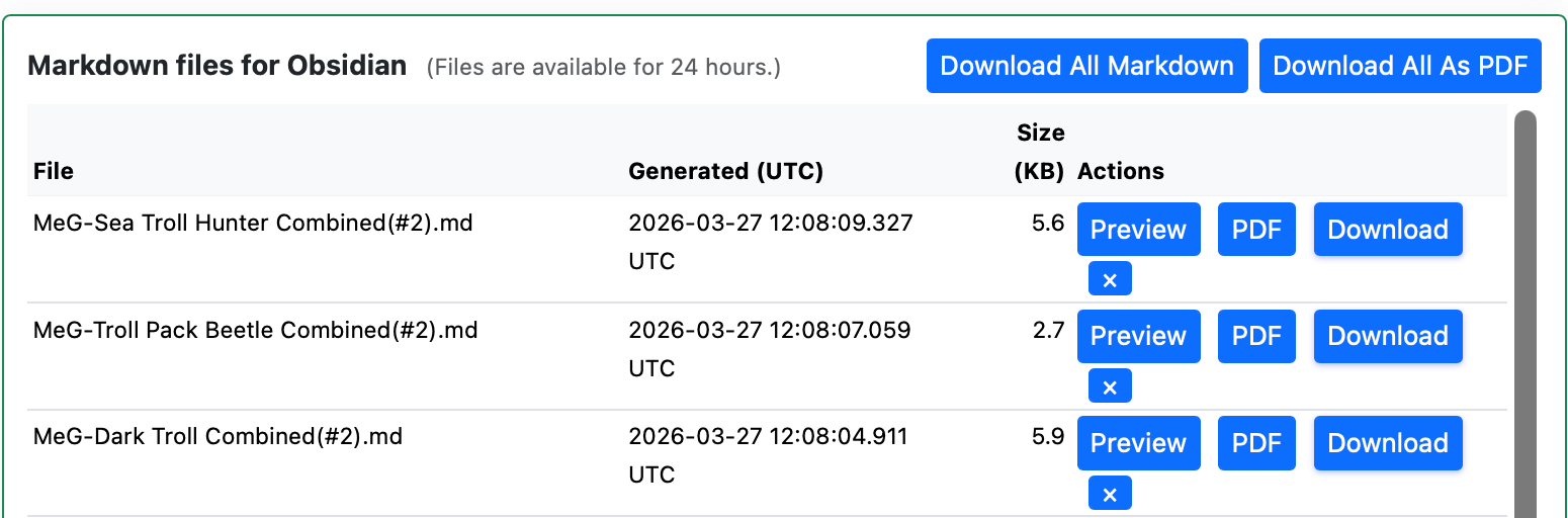 - PDF Export. Individual session files can now be downloaded as styled PDFs. Also added a “Zip all as PDF” feature for bulk exports.