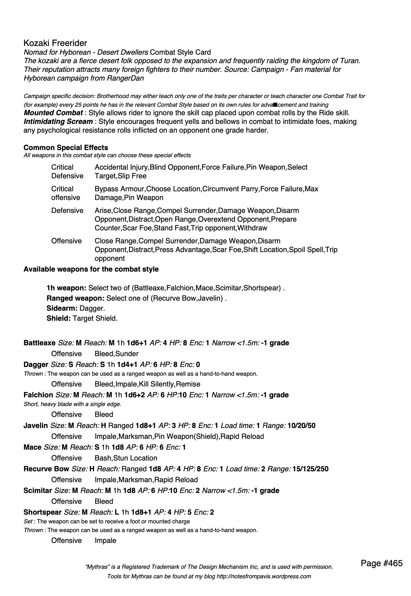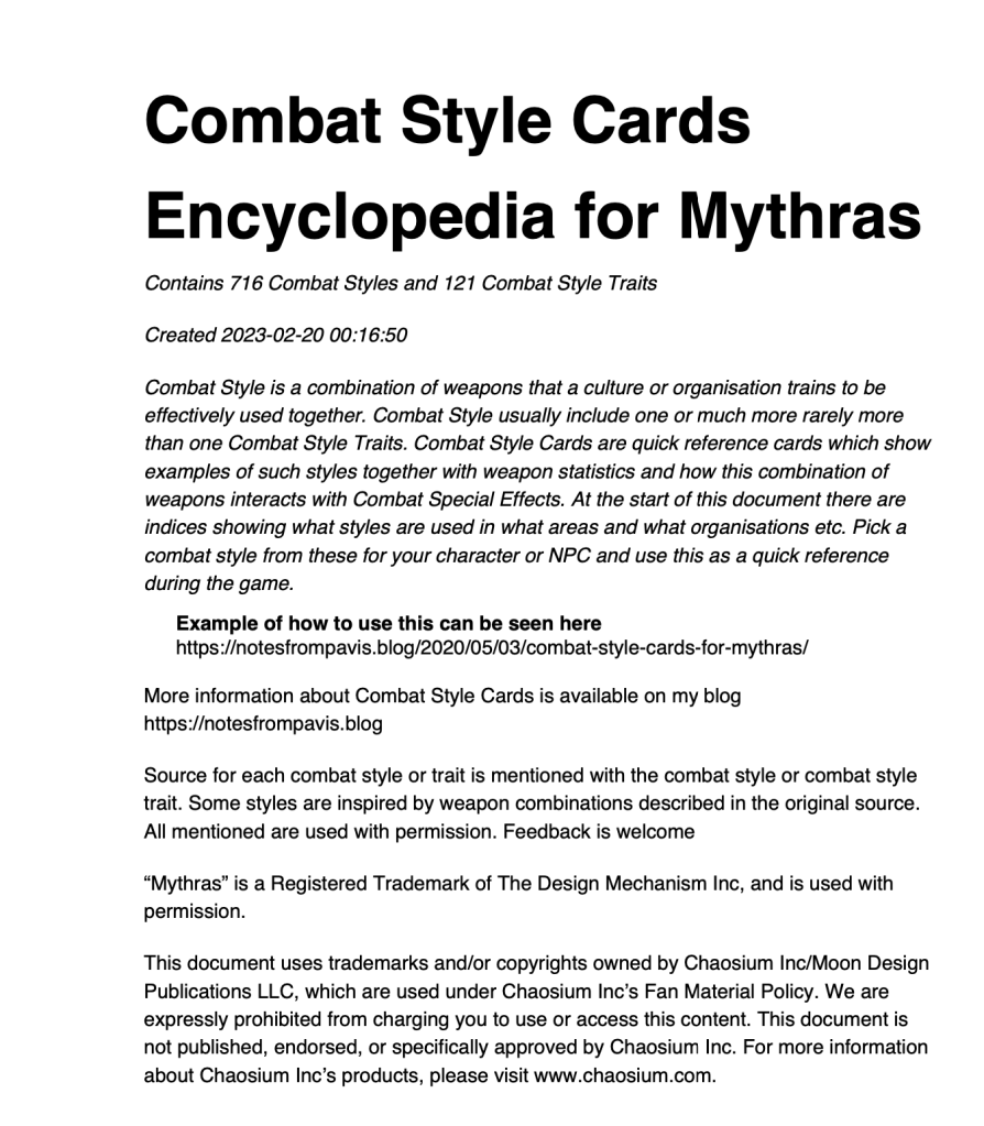 Combat Style Cards are a tool for players and GM’s in Mythras to have a quick glance info about their combat style/s.